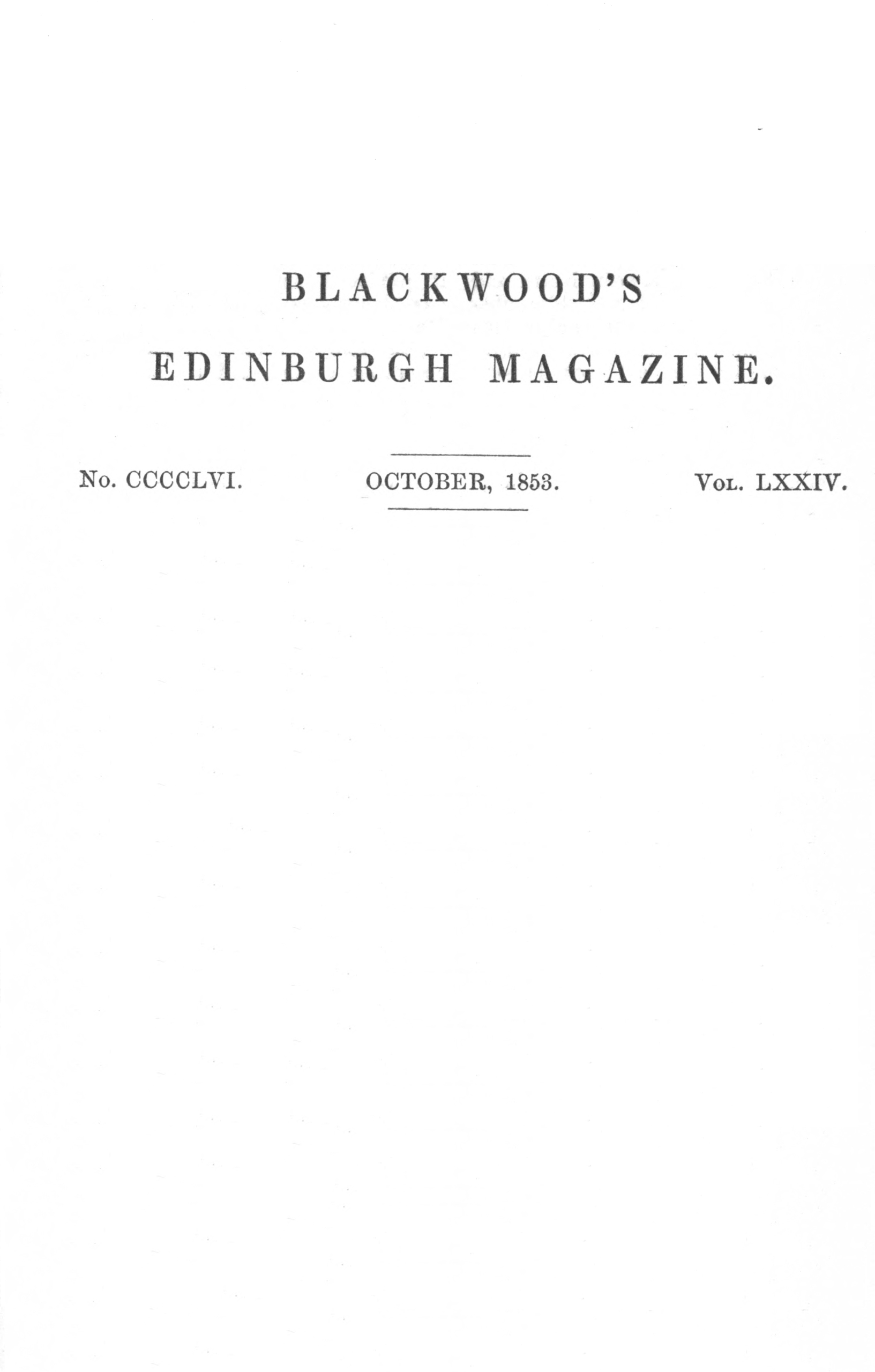 No. CCCCLVI. OCTOBER, 1853. Vol. LXXIV.